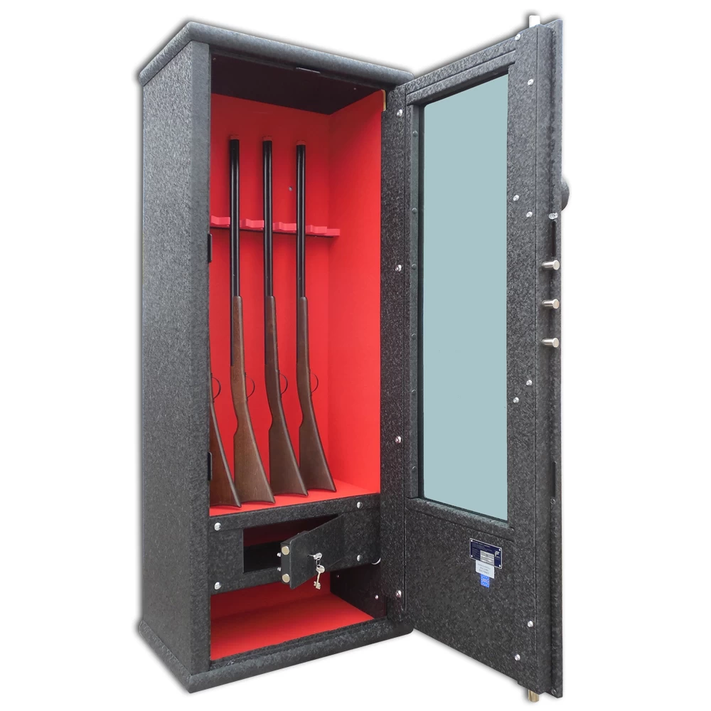 Представляет собою элитный оружейный сейф премиум-класса, наилучшим образом подходящий для хранения коллекционного оружия. Сейф отличается высоким качеством исполнения, достойной устойчивостью к взлому, а также – эстетичным дизайном, превращающим его в красивый предмет меблировки, который будет прекрасно смотреться на фоне любого интерьера вашего дома.
